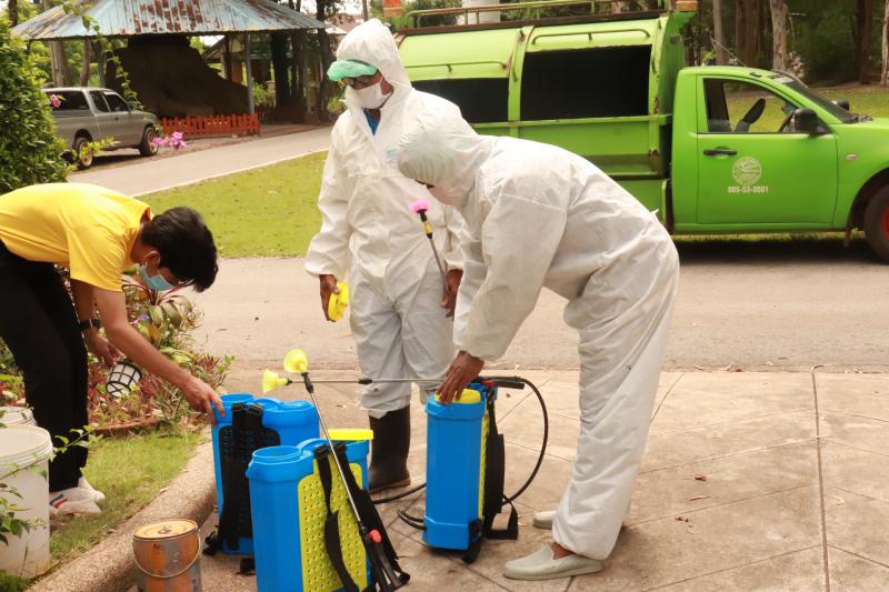 วันที่ 13 เมษายน 2563 อบต.ห้วยยาง โดยนายรำลึก อิงเอนุ ปลัดอบต. ปฏิบัติหน้าที่นายกอบต.ห้วยยาง มอบหมายให้นายสุรเดช ใจโชติ หัวหน้าฝ่ายส่งเสริมสุขภาพฯ นำอุปกรณ์พ่นยาและยาฆ่าเชื้อโรคมามอบให้ศูนย์ศึกษาการพัฒนาภูพานอันเนื่องมาจากพระราชดำริ บ้านนานกเค้า หมู่ที่ 10 เพื่อทำการพ่นยาฆ่าเชื้อโรคบริเวณภายในและภายนอกอาคารสำนักงานต่าง ๆ และหลังจากนั้นก็ได้นำเจ้าหน้าที่ พร้อมผู้นำชุมชน อสม .ลงพื้นที่ ดำเนินการพ่นยาฆ่าเชื้อโรคบริเวณบ้านของราษฎร บ้านบอน หมู่ที่ 5 ซึ่งเป็นผู้อยู่ในกลุ่มความเสี่ยงการเฝ้าระวังตามมาตราป้องกันการแพร่ระบาดโรคโควิด-19 ทั้งนี้เพื่อเป็นการป้องกันไม่ให้มีการแพร่ระบาดในตำบลห้วยยางต่อไป
