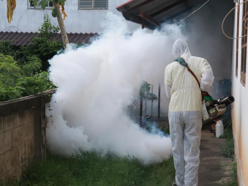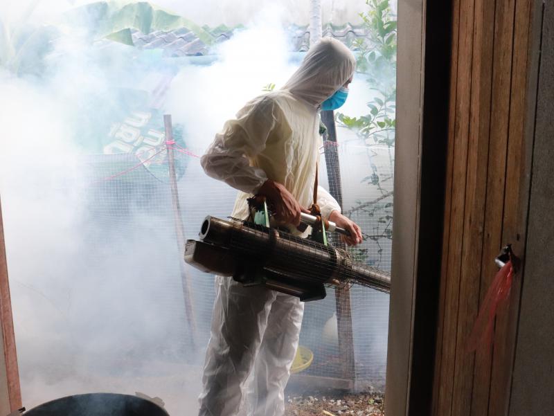 อบต.ห้วยยาง ลงพื้นที่พ่นหมอกควันกรณีพบผู้ป่วยไข้เลือดออกรายที่ 2