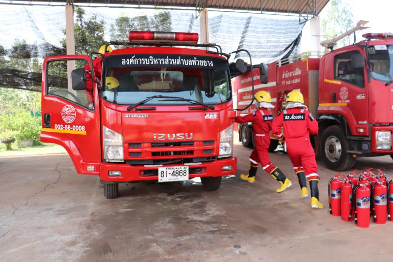 "งานป้องกันและบรรเทาสาธารณภัย อบต.ห้วยยาง ขานรับมาตรการ ร่วมฉีดพ่นยาฆ่าเชื้อโรค ทำความสะอาดสถานที่ต่าง ๆ ตามมาตรการป้องกันการแพร่ระบาดโควิด-19 " ในช่วงเช้าของวันนี้ งานป้องกันและบรรเทาสาธารณภัย ได้มีการซักซ้อมเจ้าหน้าที่ รถดับเพลิง อุปกรณ์ต่าง ๆ ให้มีความพร้อมในการปฏิบัติภารกิจ เป็นประจำอย่างสม่ำเสมอ โดยในการนี้ นายรำลึก อิงเอนุ ปลัดอบต.ปฏิบัติหน้าที่นายกอบต.ห้วยยาง ได้มาร่วมชมการซักซ้อมในครั้งนี้ด้วย พร้อมเน้นย้ำในการทำงานให้มีความพร้อมอยู่ตลอดเวลา และมอบภารกิจพิเศษที่สำคัญ อีกหนึ่งภารกิจให้ทีมงานป้องกันและบรรเทาสาธารณภัย นั่นคือการร่วมสนับสนุนฉีดพ่นยาฆ่าเชื้อโรค ตามสถานที่ต่างๆ เพื่อป้องกันการแพร่ระบาดของโรคโควิด-19 ซึ่งที่ผ่านมา ได้มีการดำเนินการนำรถดับเพลิงไปฉีดพ่นยาฆ่าเชื้อสถานที่จ่ายเบี้ยยังชีพ ทุกหมู่บ้าน และในวันเดียวกันนี้ งานป้องกันและบรรเทาสาธารณภัย ก็ได้ลงพื้นที่ตามศูนย์พัฒนาเด็กเล็กในสังกัด อบต. ห้วยยาง เพื่อทำการตรวจตา ตรวจสอบดูแล ถังดับเพลิงให้มีความพร้อมในการใช้งานได้ตลอดเวลา